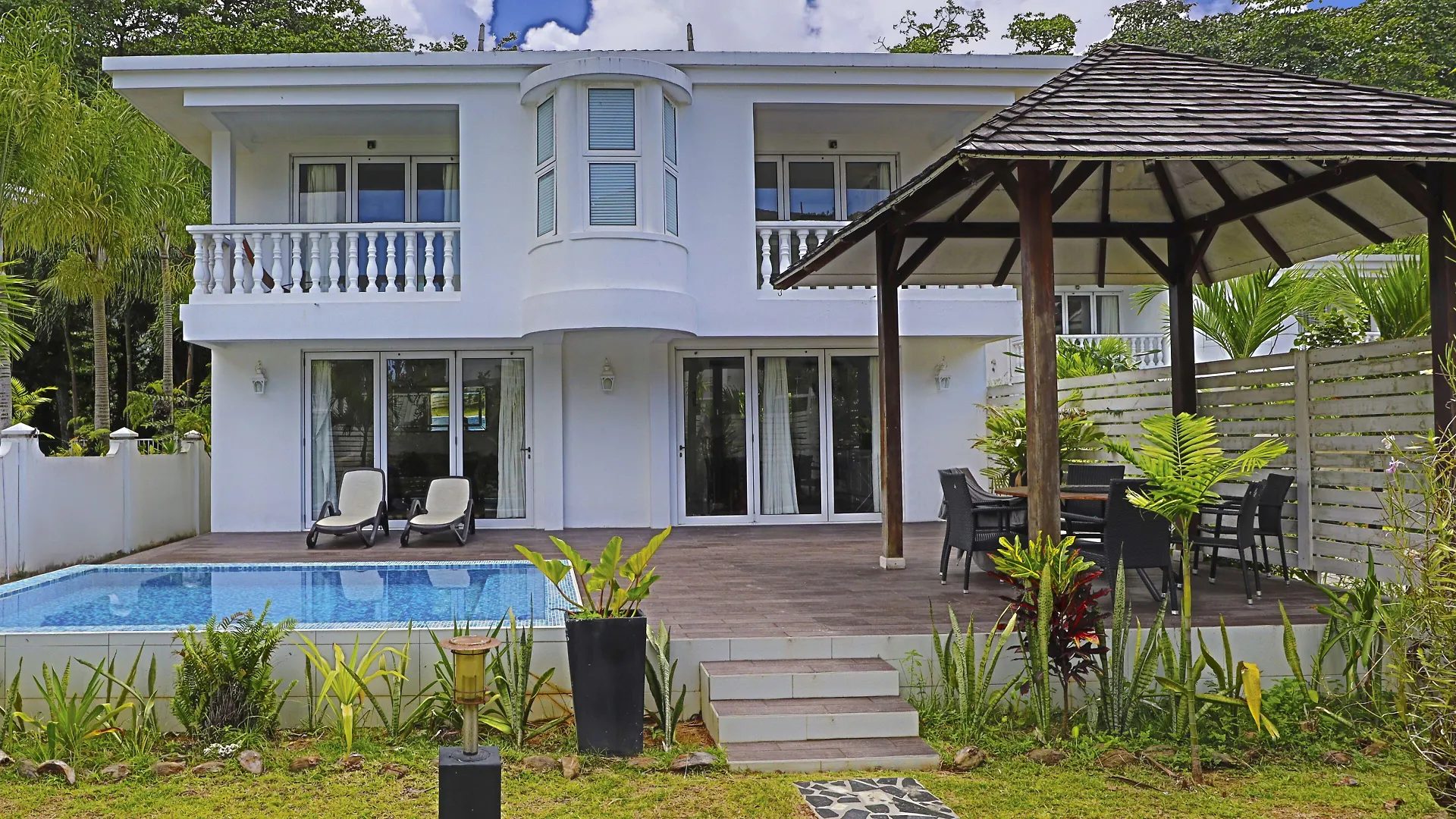 Chateau Elysium - Two Bedroom Villa 1 provides a full-sized refrigerator, a freezer, and a cooktop in a kitchenette area. Mediterranean dishes can be arranged at La Plage restaurant just moments from the Beau Vallon accommodation. Guests will also find Boat House, located a stone's throw from the villa. Guests can relax in a botanical garden with a sunbathing terrace and an outdoor pool.